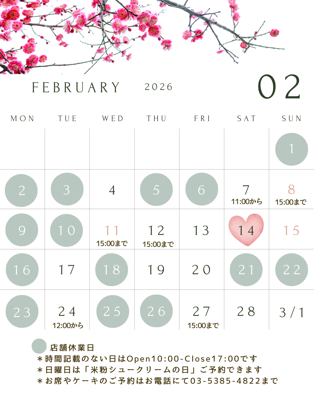 2月のスケジュールです