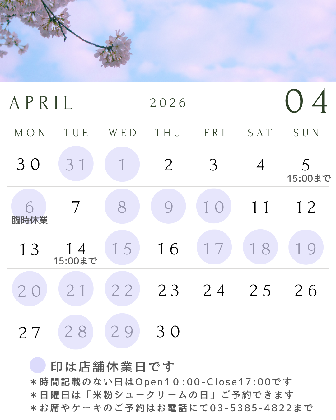 4月のスケジュールです